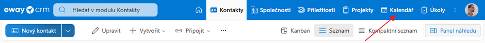 Pro přechod do kalendáře stačí kliknout na jméno modulu v horním menu webové stránky eWay-CRM Online.
