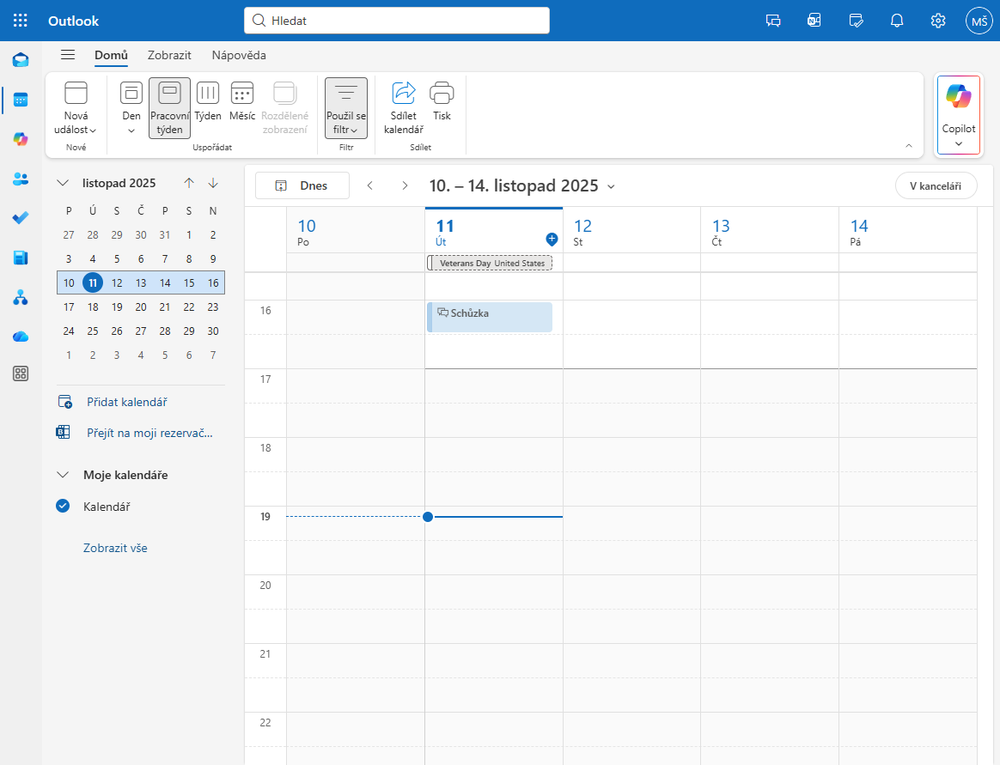 Po kliknutí na odkaz se zobrazí kalendáře vašeho Microsoft 365 účtu.