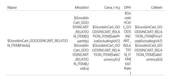 Pro základní nahrazení v textu jsou nyní podporovány tyto proměnné reprezentující celou položku:
