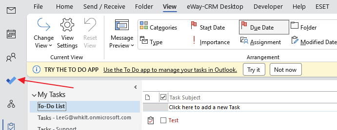 If you click Tasks icon in the eWay-CRM ribbon, you will get list of all tasks saved in eWay-CRM.