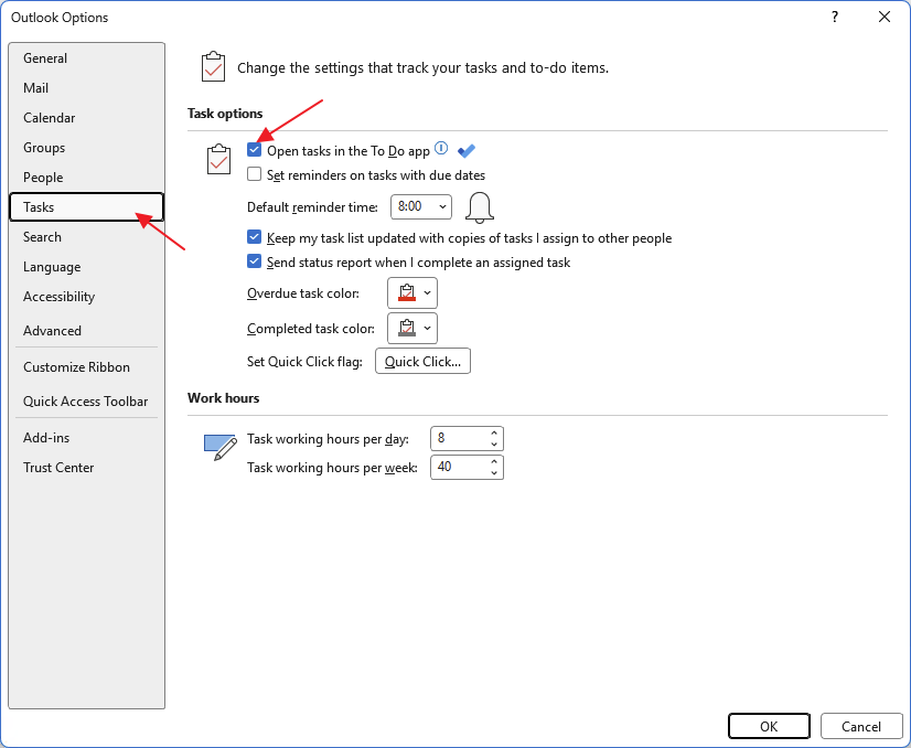 In Outlook Desktop, it is possible to enable the To Do app, which handles tasks in a different way.